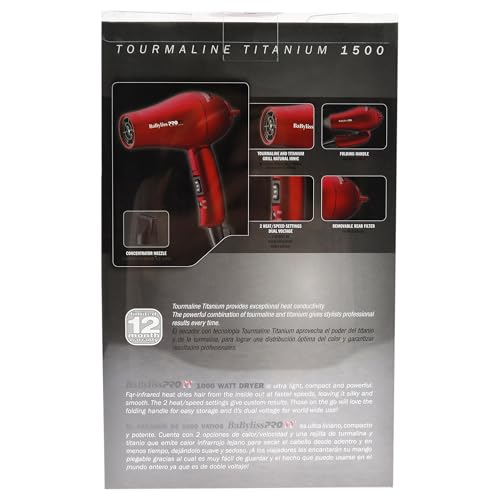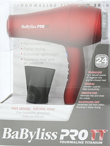 BaBylissPRO TT Tourmaline Titanium Travel Dryer, Red