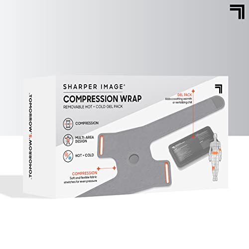 Sharper Image Compression Wrap with Removable Hot & Cold Gel Pack, Easy Adjust Straps, Multi-Area Design for Use on Elbows, Knees, Back, Stomach & More, Enhanced Pain Relief & Recovery Post-Workout