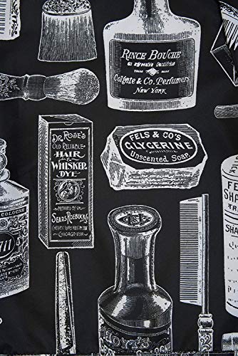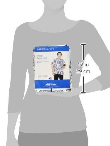 Betty Dain Vintage Print Barber Jacket, Throwback Style Illustrated Print, Machine Washable, Lightweight Water Resistant Polyester, Two Lower Pockets, One Chest Pocket, Zipper Front Closure, White