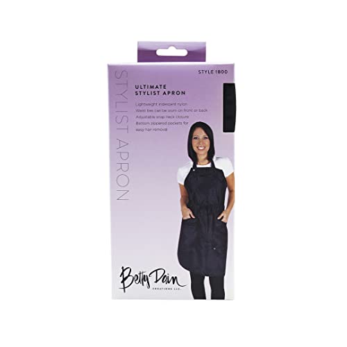 Betty Dain Ultimate Salon Stylist Apron, Lightweight Iridescent Nylon, Two Lower Pockets with Zippered Bottoms, Adjustable Snap Neck Closure, Waist Ties Worn Front or Back, Machine Washable, Black