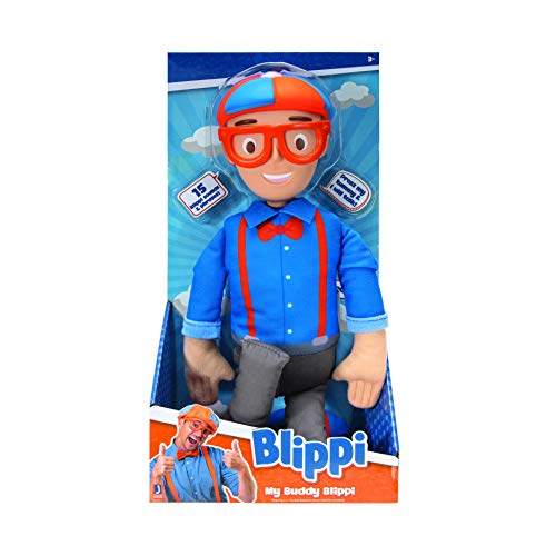 Blippi BLP0013 Bendable Plush Doll, 16” Tall Featuring SFX-Squeeze The Belly to Hear Classic catchphrases-Fun, Educational Toys for Babies, Toddlers, and Young Kids