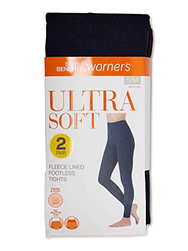 Blissful Benefits by Warner's Women's Footless Fleece Lined Tights, 2 Pack (Black Heather, L/XL)