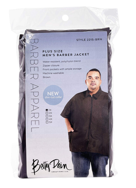 A Size Above Big & Tall Barber Jacket, Cut for Fuller Figures, Short Sleeve with Zipper Front, Left Breast Pocket Plus Two Lower Pockets, Lightweight, Water Resistant Nylon/Poly, Chocolate Brown, 4X