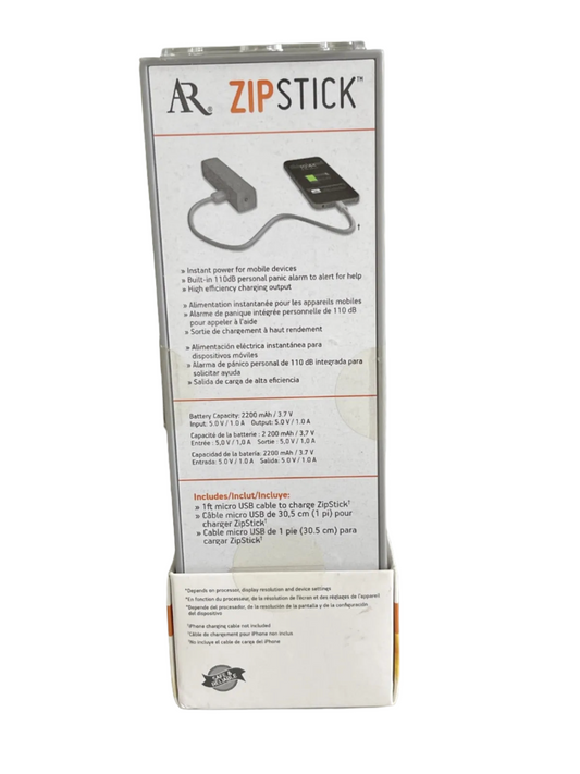 Acoustic Research Rechargeable Power Bank ZipStick Flashlight Panic Mode Mobile
