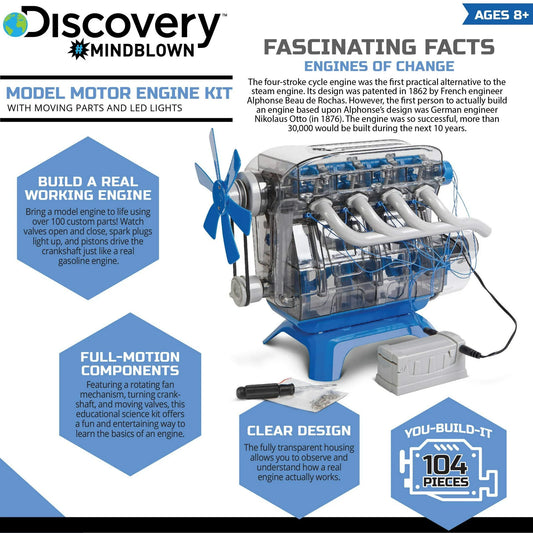 Discovery Kids MINDBLOWN Model Engine Kit DIY Mechanic Four Cycle Internal Combustion Assembly Construction Comes W Valves Cylinders Hardware More Encourages STEM Creativity Critical Thinking