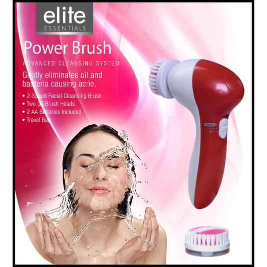 Elite Essentials Dual Speed Facial Cleansing Power Brush - (Includes 2 Heads & Travel Bag)