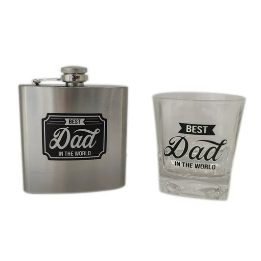 Father's Day Best Dad in the World Flask and Rocks Glass Set - Way to Celebrate
