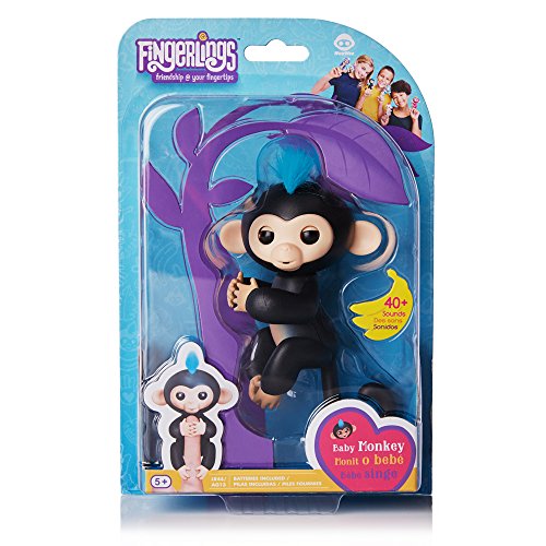 Fingerlings - Interactive Baby Monkey - Finn (Black with Blue Hair) By WowWee
