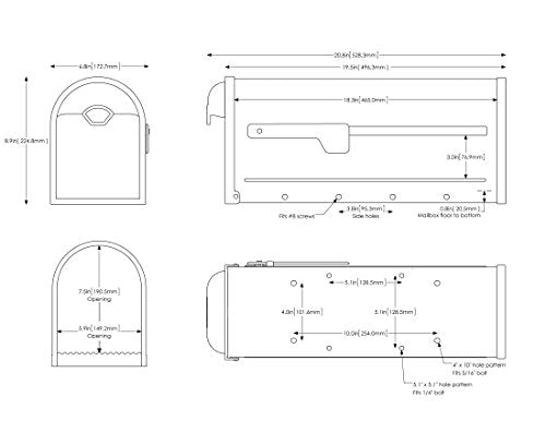 Architectural Mailboxes 8830B-10 Winston Nickel Flag Post Mount Mailbox, Medium, Black