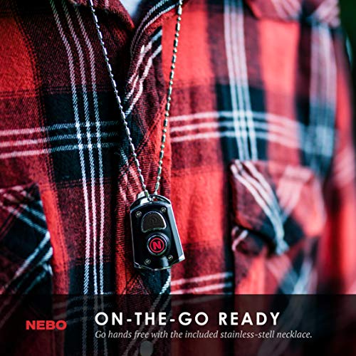NEBO Mini Rechargeable Keychain Flashlight: Features 6 Unique Light Modes, Including 400 Lumen Turbo Mode and 3 LED Color Options; Easily Secured via Necklace, Lanyard or Keyring – MYCRO 6714 (Black)