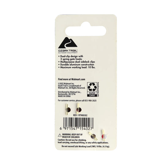 Ozark Trail S-Shaped Aluminum Carabiner Size 2, 2 Pack, Red