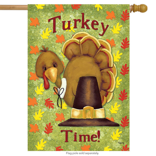 Rain or Shine "Turkey Time!" Fall Autumn Thanksgiving Art Flag 28" X 40"