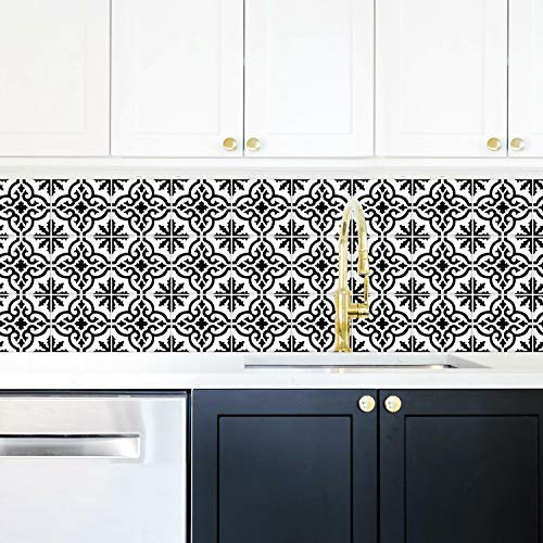 RoomMates RMK4649GM Ornate Black and White Tile Backsplash Peel and Stick Wall Decals