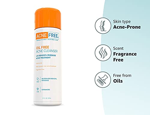 Acne Free Oil-Free Acne Cleanser, Benzoyl Peroxide 2.5% Acne Face Wash with Glycolic Acid to Prevent and Treat Breakouts, 8 Ounce