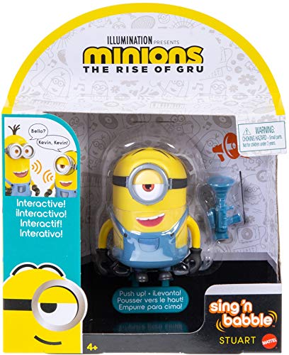 Minions: The Rise of Gru Sing ‘N Babble Stuart Interactive Action Figure, Talking Character Toy with 25 Plus Talking & Laughing Sounds 4-in Tall, Kids Gift Ages 4 Years & Older