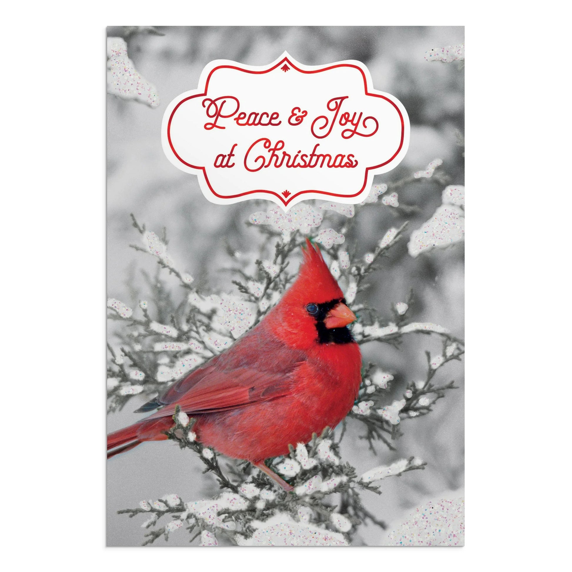 2024-DaySpring 18 Inspirational Christmas Greeting Cards, Black & White with Red Cardinal , Outdoor Photography , NLT scripture