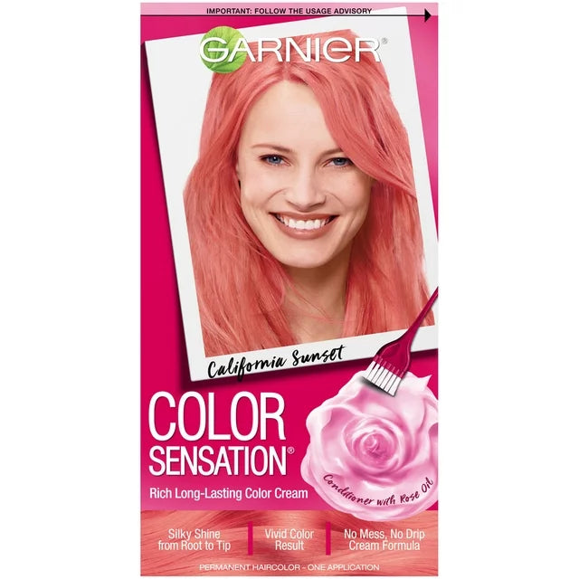 Saturate your hair with the mesmerizing color of the 7.26 California Sunset (Coral Pink) Garnier Sensation Hair Color Cream. An exclusive formula delivers luxurious, soft color of rich intensity that lasts for weeks. Enjoy a premium color experience of skillful craftsmanship right at home.