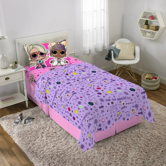 LOL Surprise Kids Twin Sheet Set, Purple and Pink, MGA