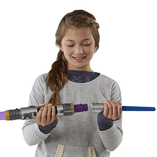 Details: The lightsaber is the signature weapon of the heroic Jedi. It is an elegant weapon designed to take advantage of a Jedi's unique skills. With the Jedi Power Lightsaber, kids can imagine their own epic adventures as a powerful Jedi, defending freedom and peace across the galaxy. Grab the hilt to touch-activate the original, epic Star Wars theme song. Press the button to light up the blade and hear lightsaber clashing sounds. The blade extends with a flick of the wrist, and kids can use the included lightdagger separately or attach it to the hilt for a double bladed lightsaber (lightdagger blade does not light up). Once the blade is activated, swing the lightsaber to hear more clashing sounds. Combine with Lightsabers from the BladeBuilders system (each sold separately) and create a custom lightsaber! Star Wars products are produced by Hasbro under license from Lucasfilm Ltd. Hasbro and all related terms are trademarks of Hasbro.